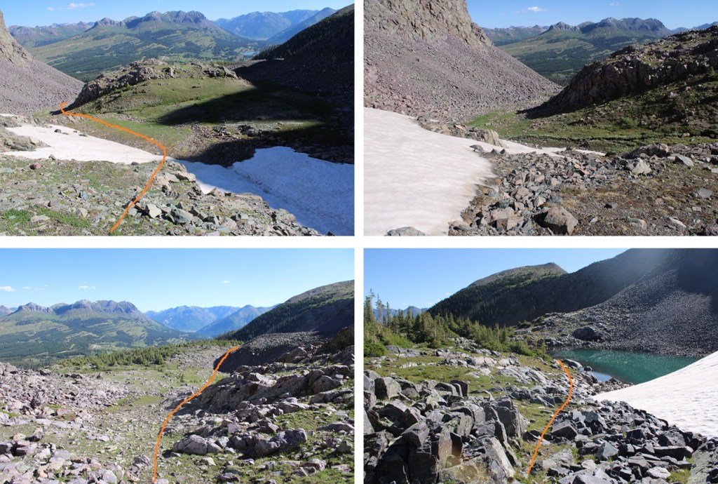 Then back down into the upper basin on a slightly different route. Lots of loose rocks here.