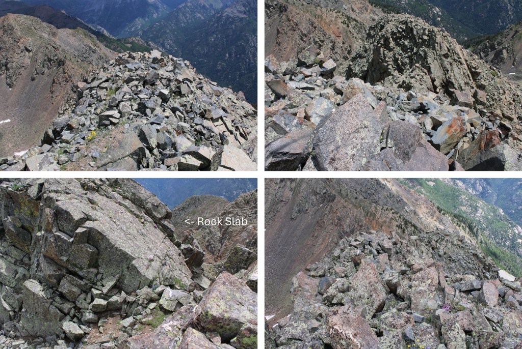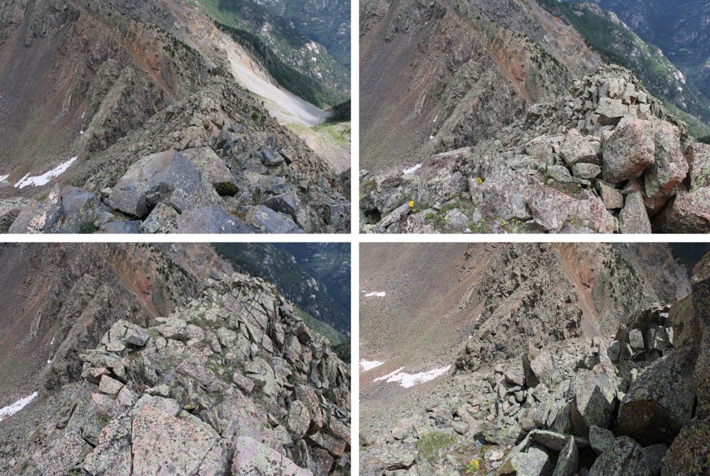 Then back down the ridge. Downclimbing seemed much easier than upclimbing on this route. The route was easier to ‘find’ on the way down.