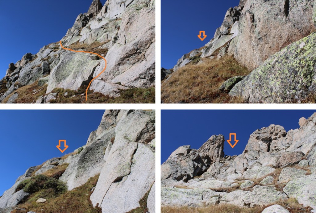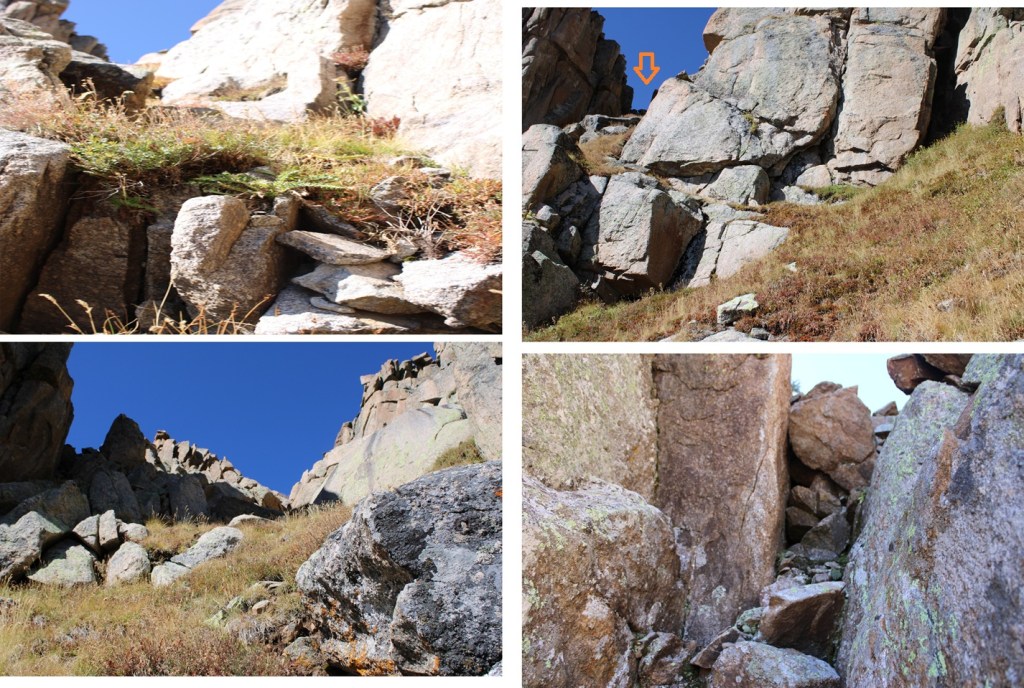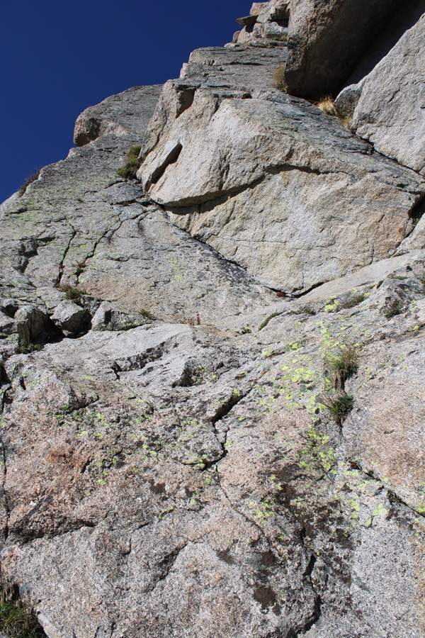 From the base of this large rock outcropping I looked for a grassy ramp in the distance to the south/southwest. It’s small, and the access point for the rest of the climb.