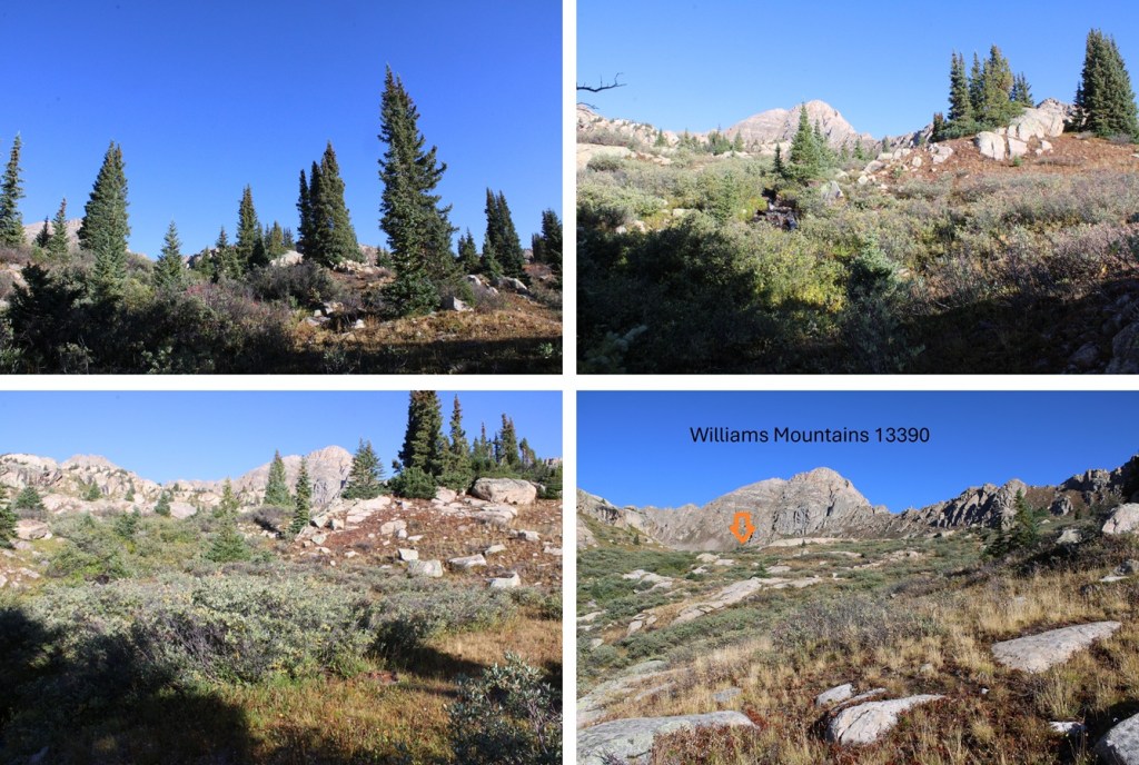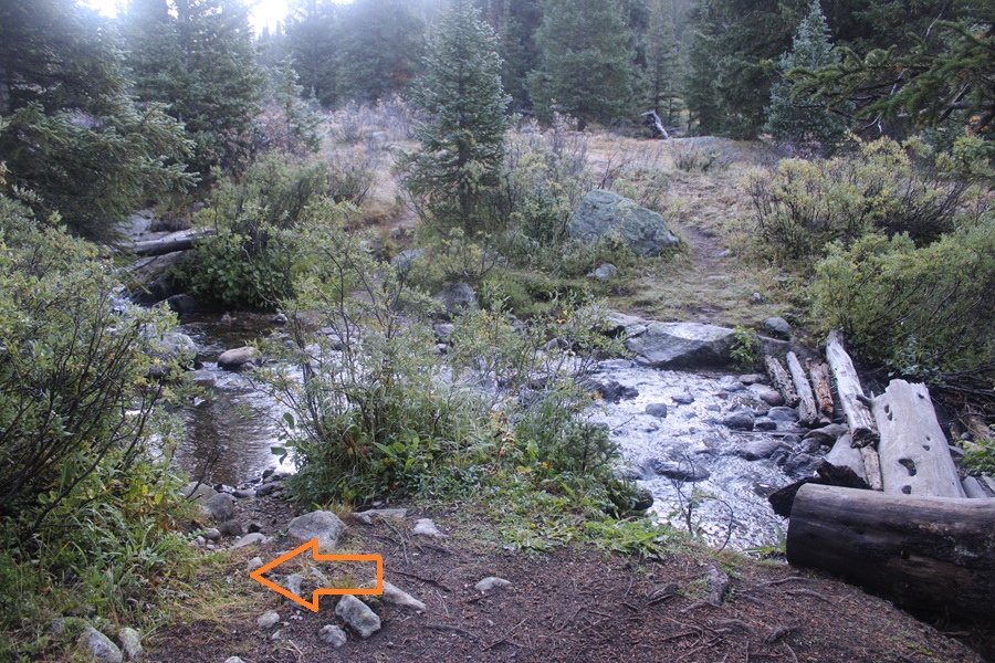 After about 4.25 miles, at 11430’, and just before the third creek crossing I turned left and followed the creek for about 20 yards before crossing the creek and then following the creek up to an upper basin, heading northeast. This creek isn’t named, and neither is the basin, but following it will put you just east of 13024. This is class 2. It’s less than a mile to make it into the basin once you leave the trail.