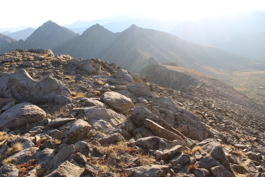 This was an out and back hike for me, so I turned around and descended the ridge the way I’d summited, heading east.