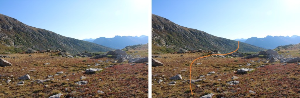 Just before the grassy area on the ridge I turned right and descended southeast back into the basin.