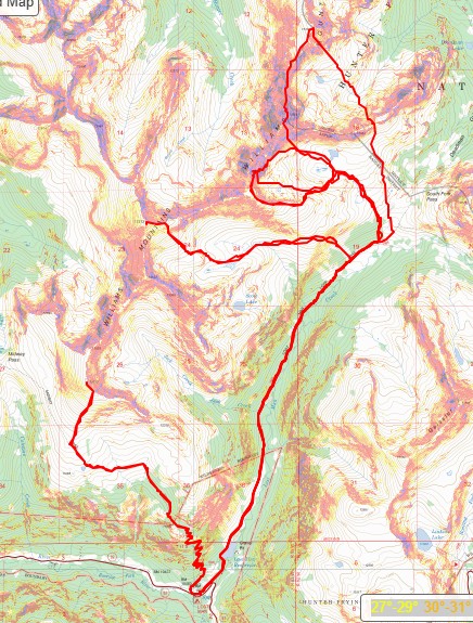 This finished my peaks in the Williams Group. Here’s a topo from all the peaks I did in the area, avoiding the traverse. If anything, they can serve as bailout points if needed.