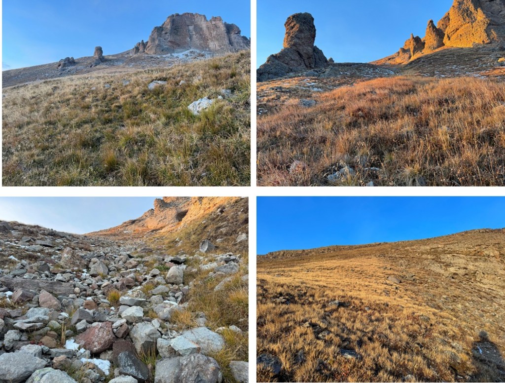 It took me just under 3 hours from the trailhead to my campsite. I set up camp and enjoyed the rest of my afternoon. I saw two different herds of elk, lots of raptors, and had amazing views of the peaks nearby. I could see PT 13015 to the northeast, and PT 13048 to the south. It was my goal to just enjoy the solitude.