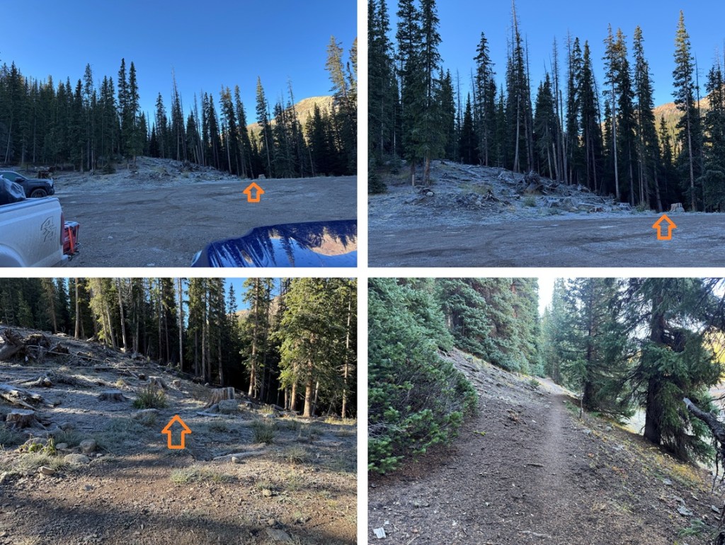There’s been a fire and a lot of logging in the area, so the beginning of the trail isn’t easy to find. There isn’t a trailhead marker, etc. but the trail starts at the south end of the parking area.