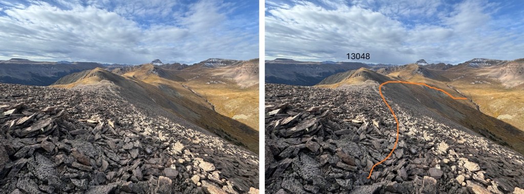 Here’s my overall route to the summit of 13015. It’s all class 2 on mostly tundra and then rocks at the end.