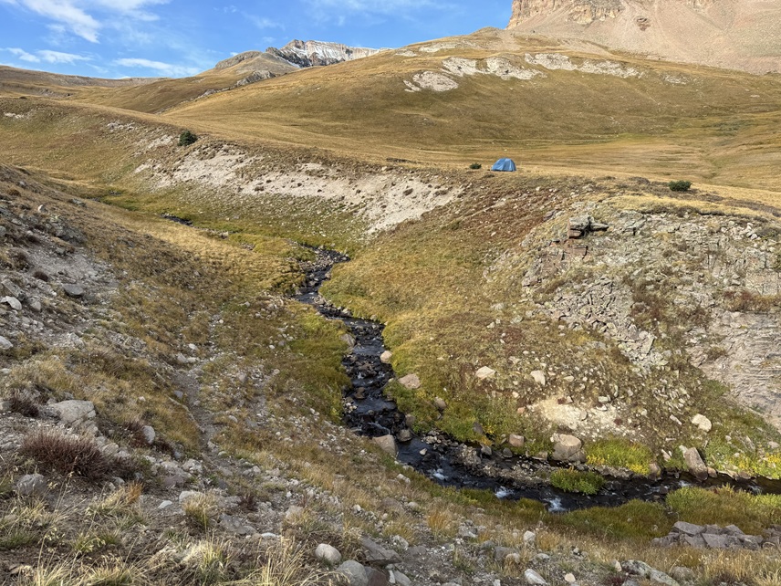 After hiking for 6 miles, and at 12050’ of elevation I found my campsite for the night. It’s important to note this spot even if you don’t plan on making this an overnight, as this is where you’ll cross the creek again.