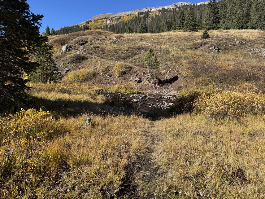 Just after descending through the trees I came to a creek crossing.