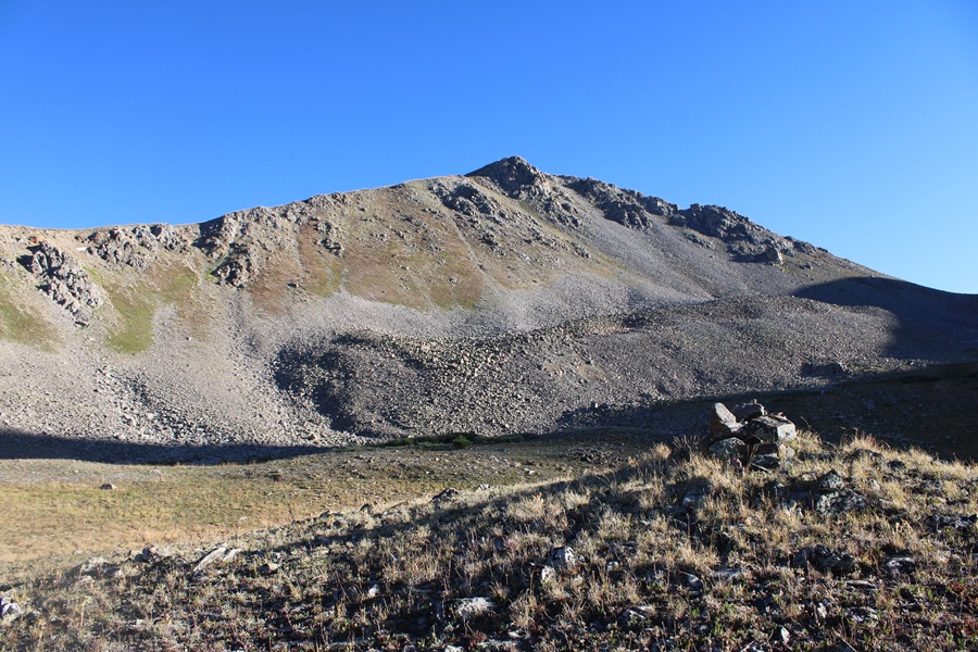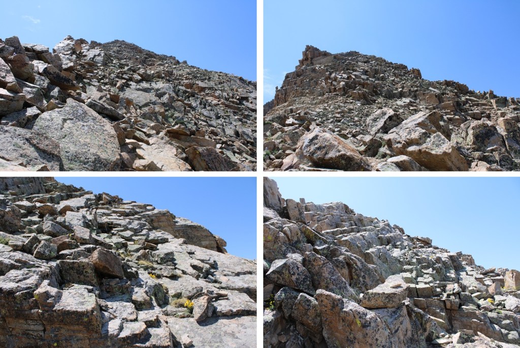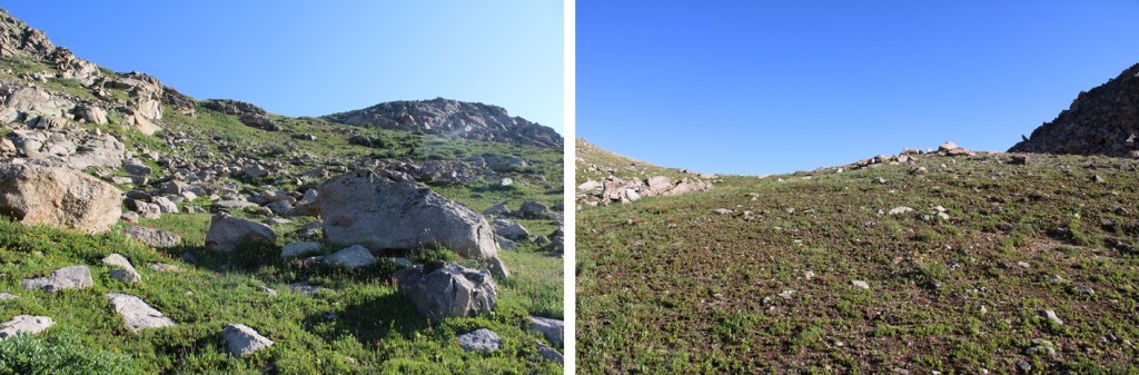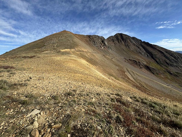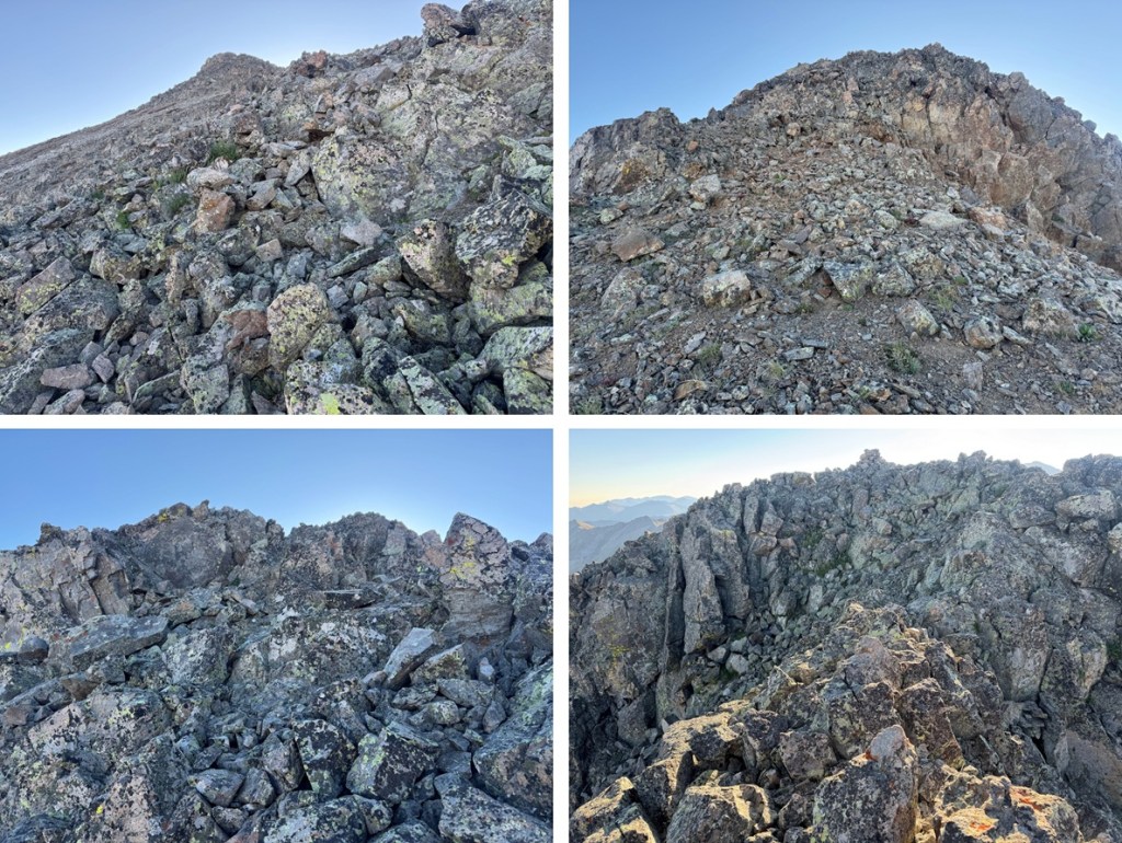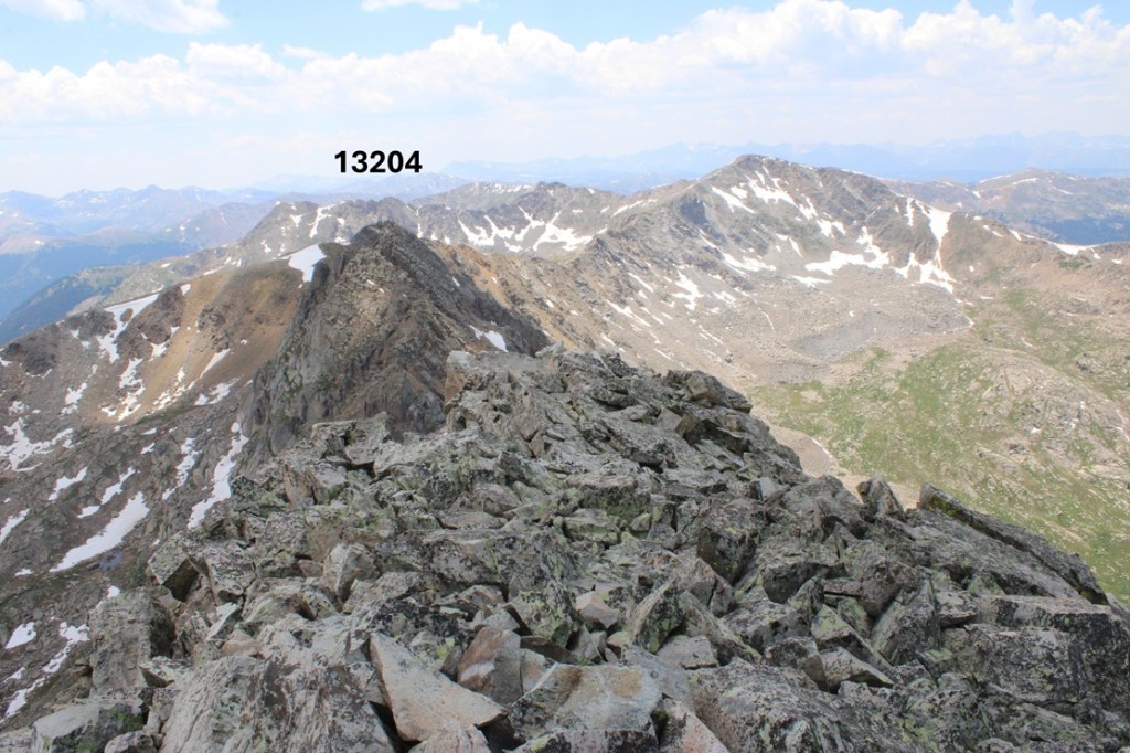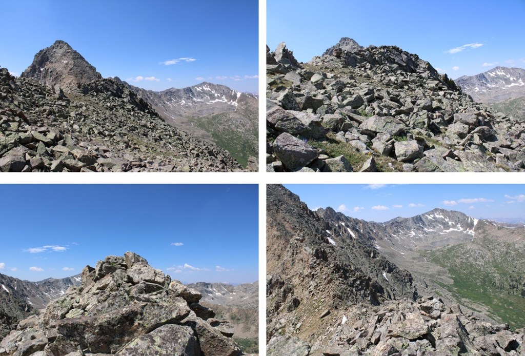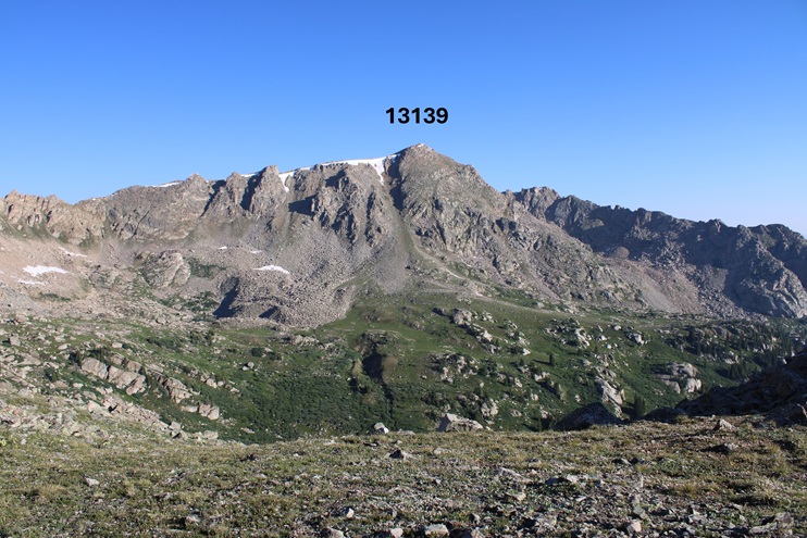 From the false summit I could see the true summit of 13033. The terrain becomes a little rockier, but it can still be kept class 2 by sticking to the ridge or dipping down a couple of feet to the right to stay on the tundra. The route is obvious. Even rock-hopping along the ridge this can be kept class 2.