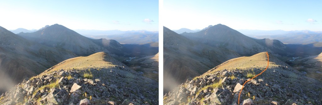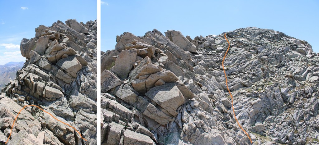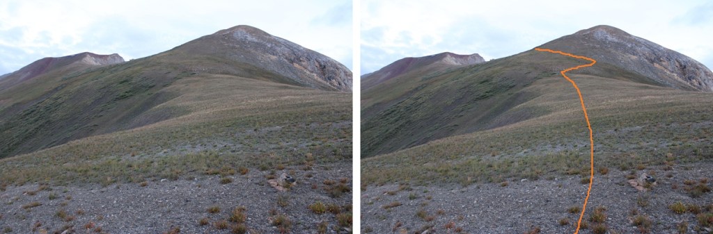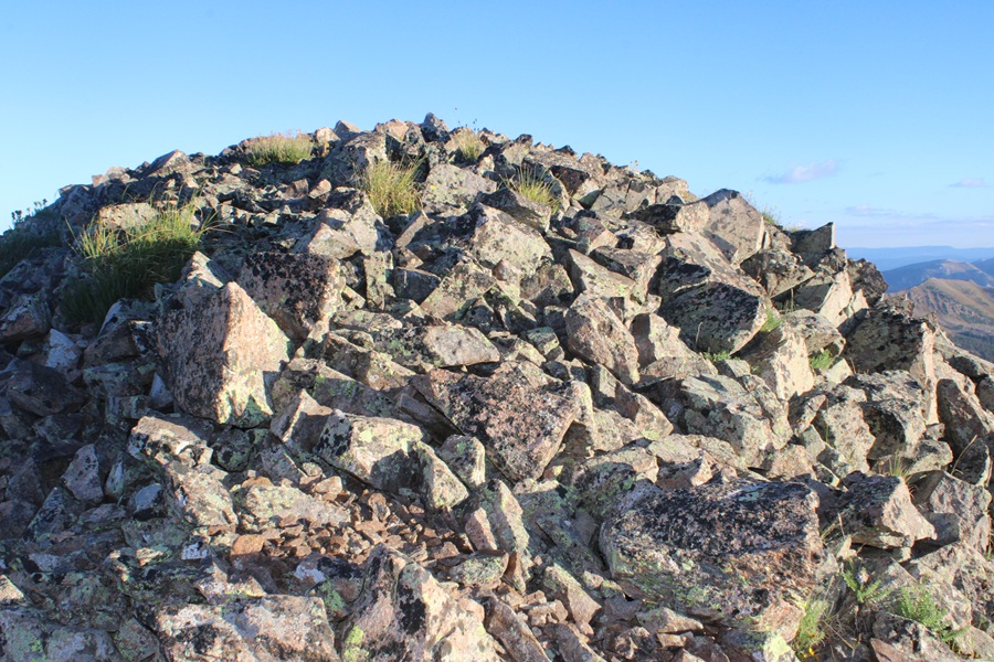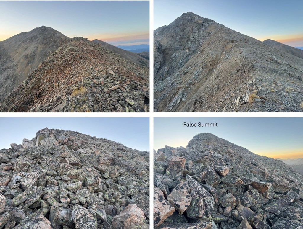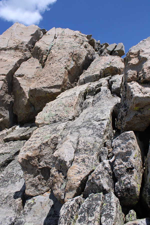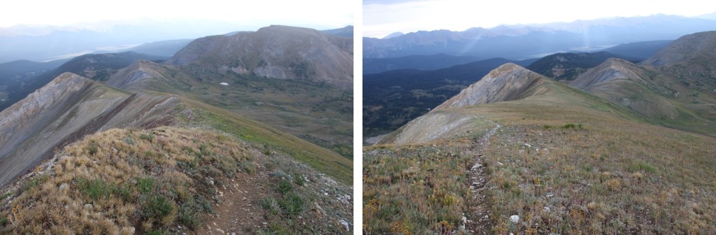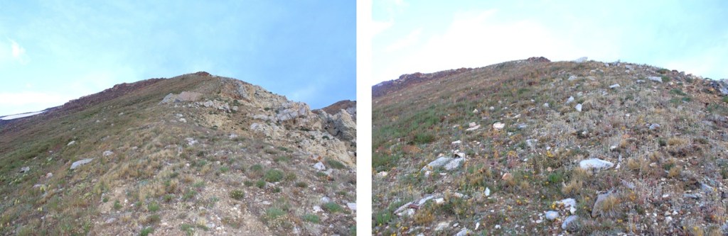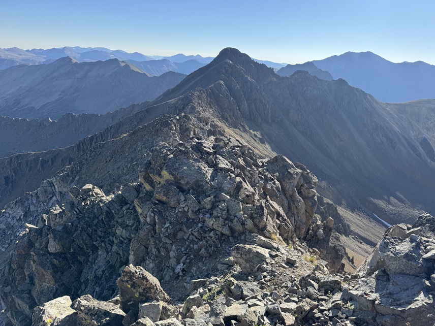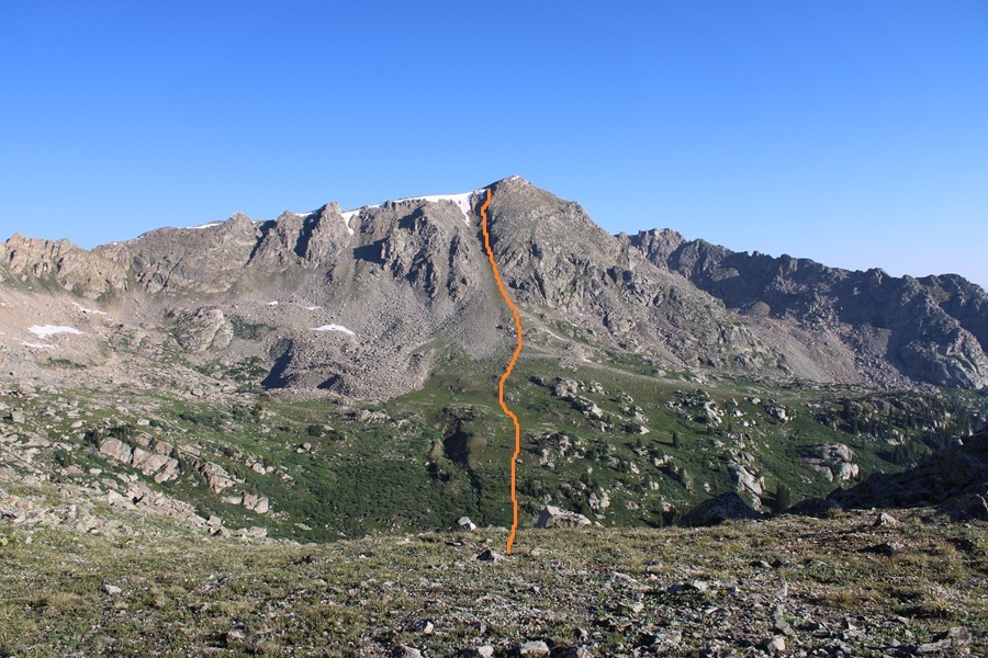 From the false summit I could see the true summit of 13033. The terrain becomes a little rockier, but it can still be kept class 2 by sticking to the ridge or dipping down a couple of feet to the right to stay on the tundra. The route is obvious. Even rock-hopping along the ridge this can be kept class 2.