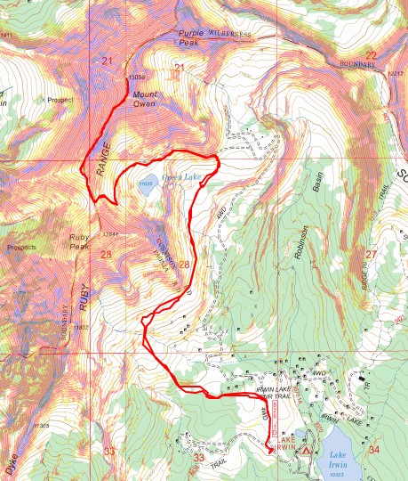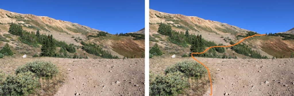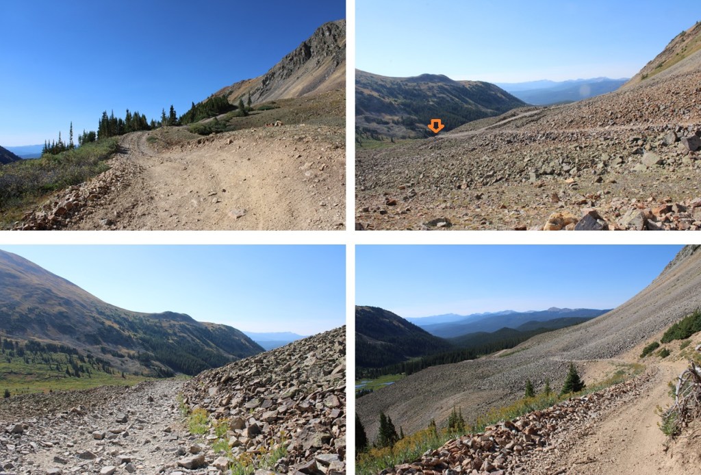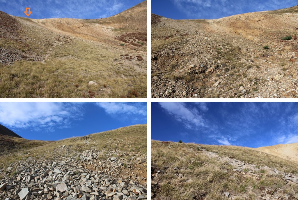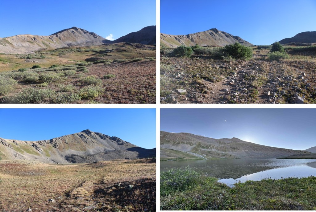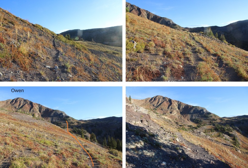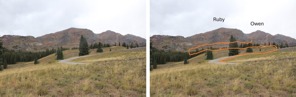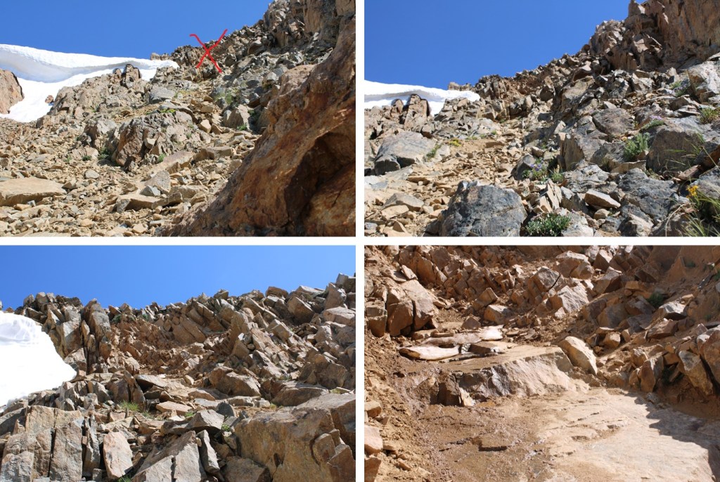 Here’s a view of my route back down the avalanche chute. Notice Deadman Lake in the distance. It’s a good visual for the decent.