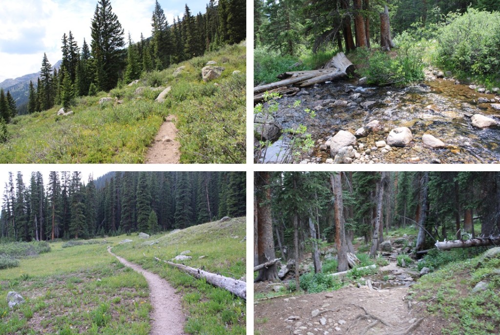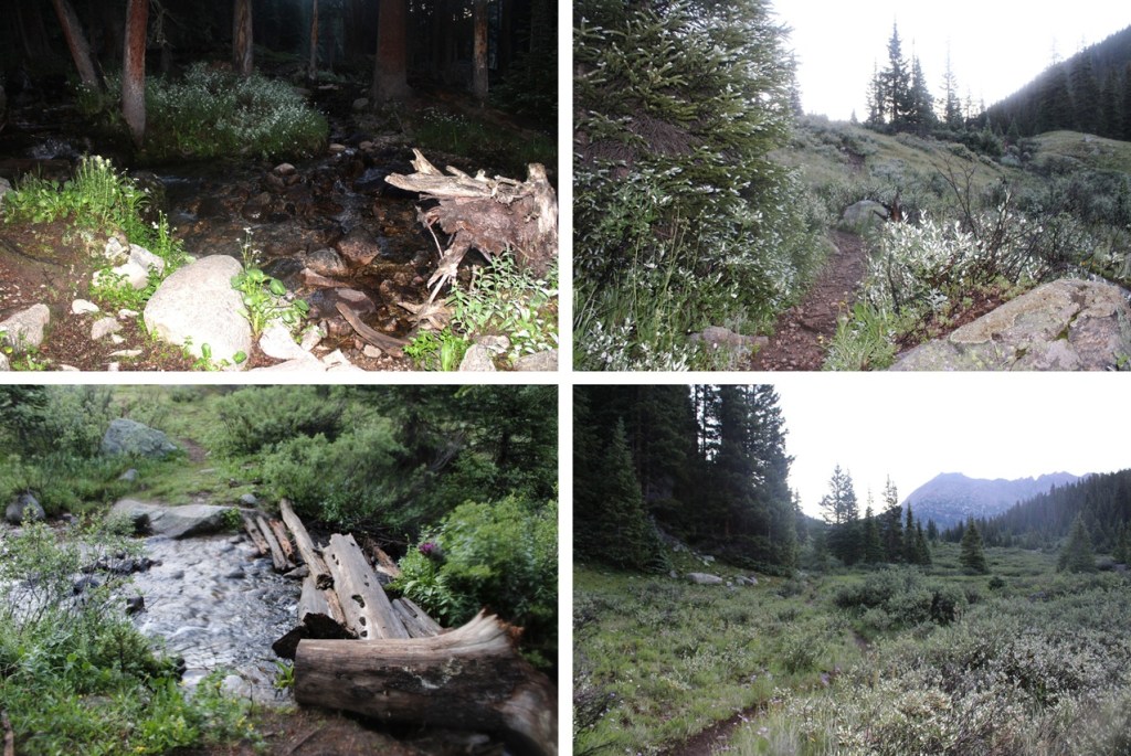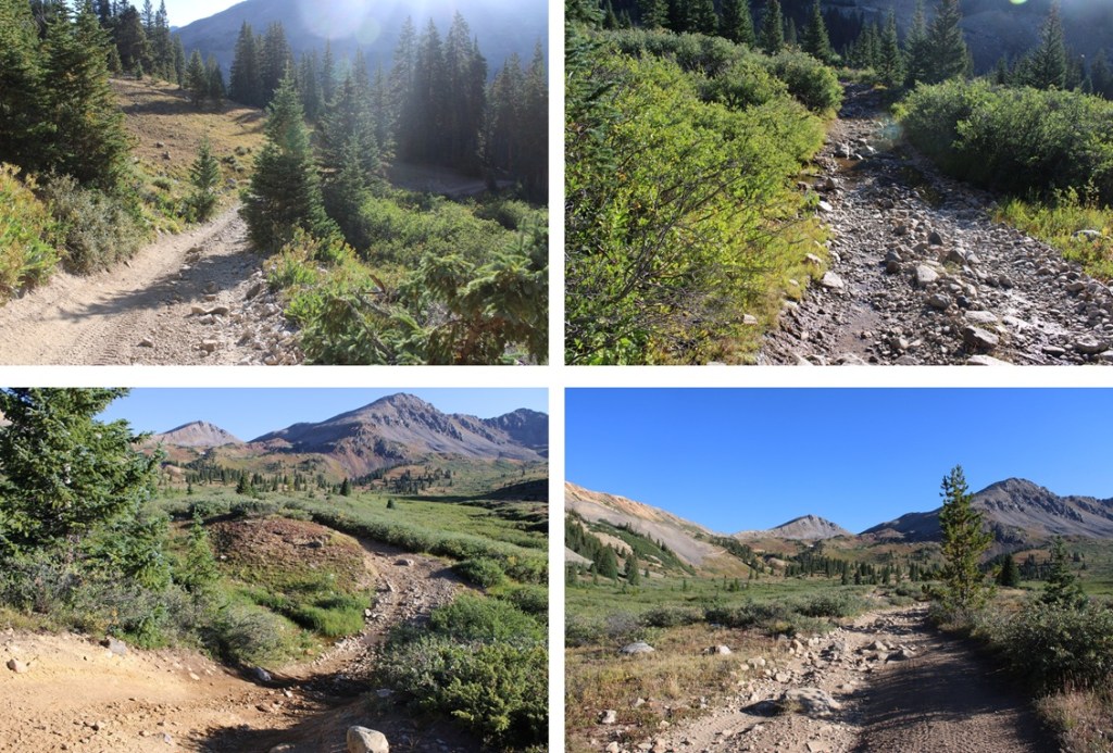 The trail starts at the south end of the parking area. This is a class 1 trail I followed for 4 miles. It parallels the South Fork Fryingpan River. If you get to Deadman Lake you’ve gone too far. There were several small stream crossings and lots of evidence of moose (but I didn’t see a moose). This area has also seen avalanches and a fire in recent years, but the trail is well maintained and easy to follow with no junctions. Oh, and SO MANY SPIDERWEBS! It was obvious no one had hiked this trail in a while. My tracks were the only ones (besides moose) going in and coming out.