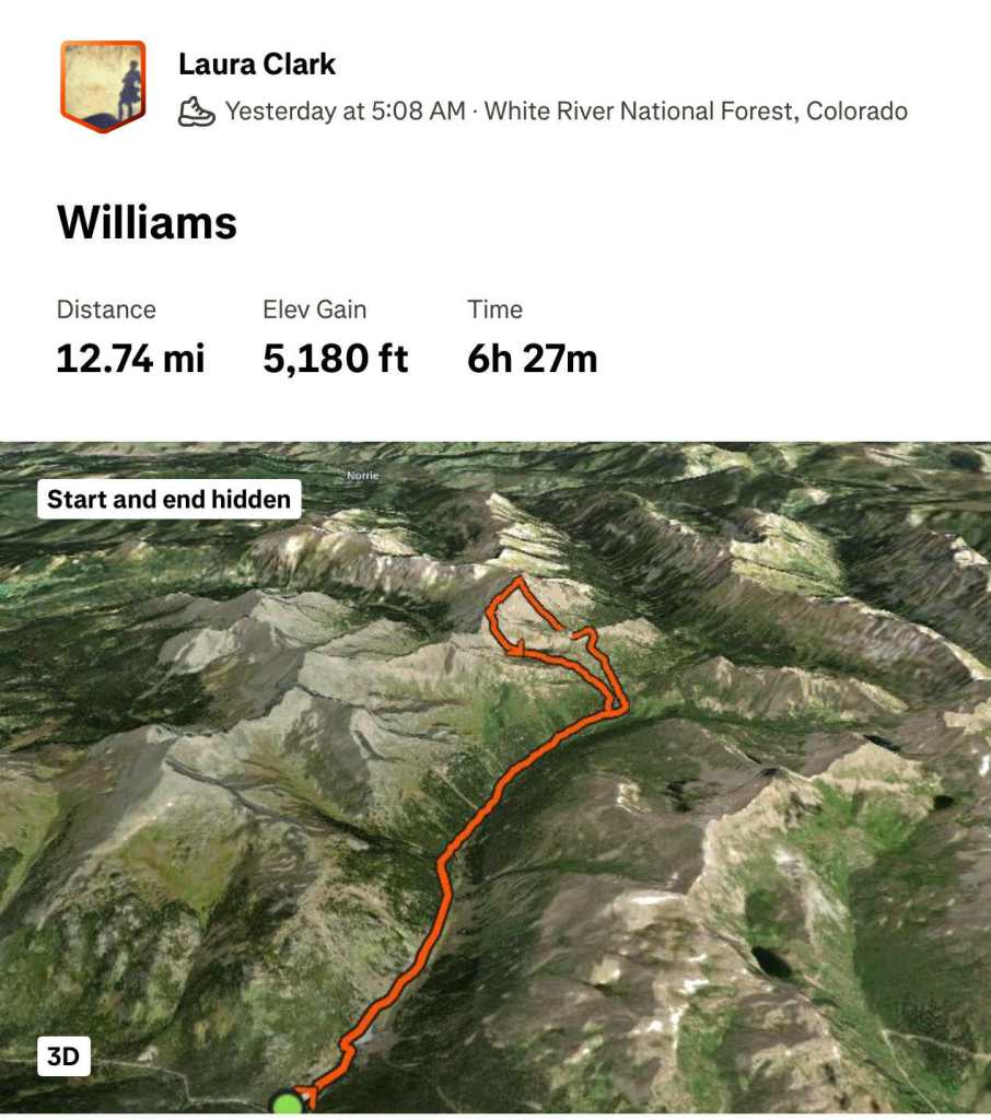 I made it back to the trailhead at 12:30pm. This was a 12.14 mile hike with 3207’ of elevation gain.