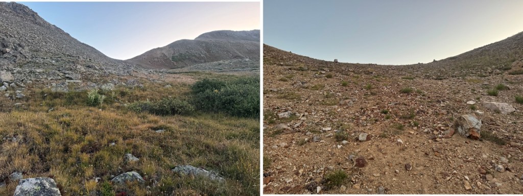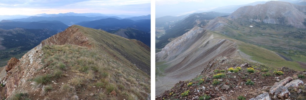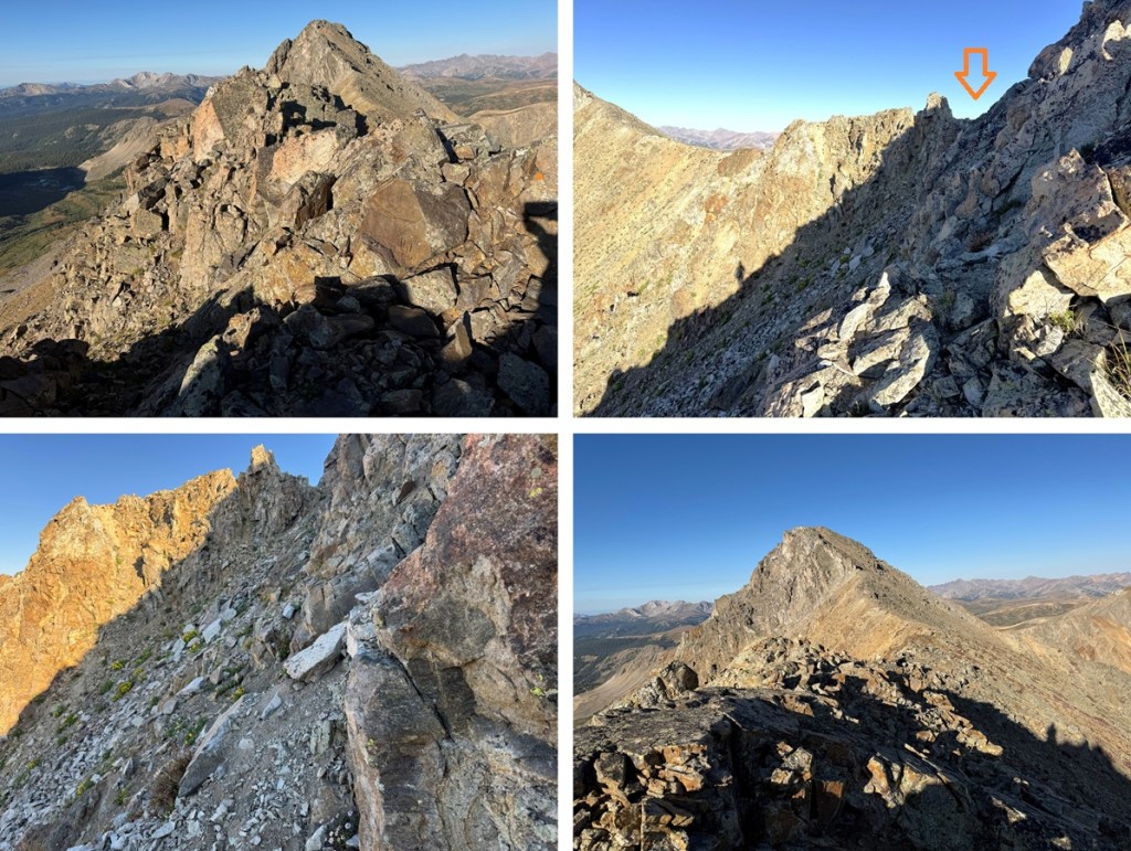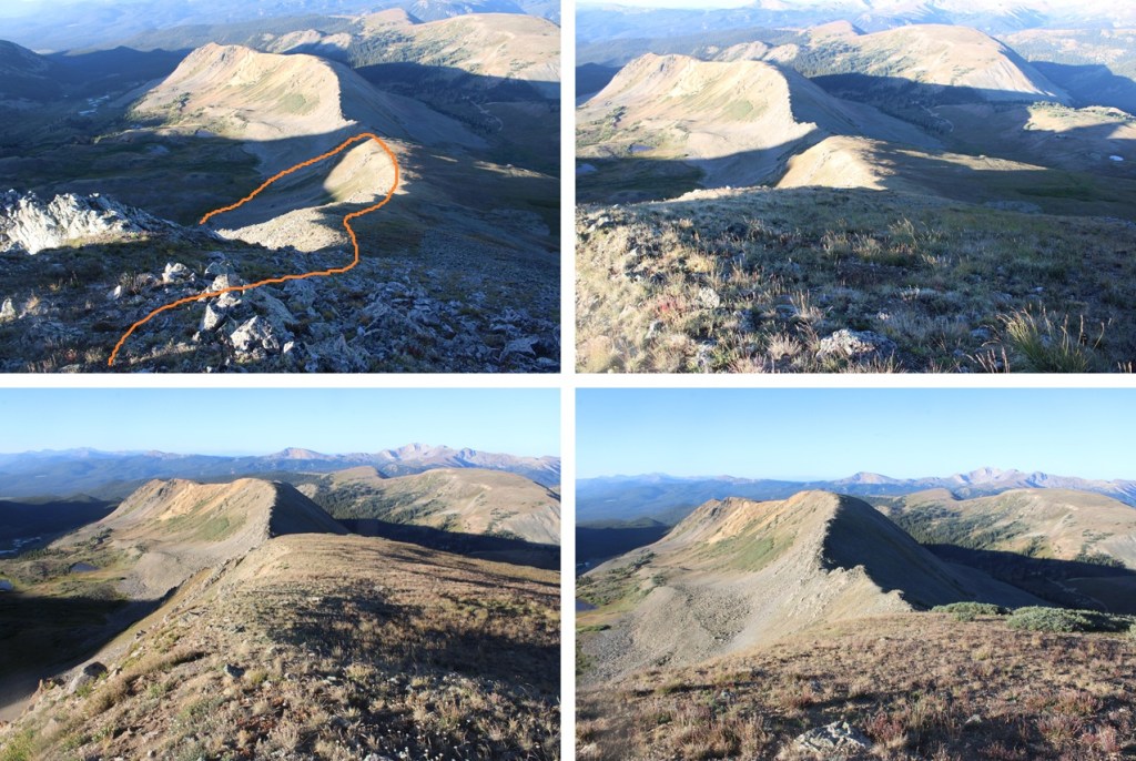 It was my intention to summit 13014 today as well by following the ridge. However, I took my phone off of airplane mode and my cousin chat group immediately started blowing up with messages I had missed from the past 2 days. I must have had 200 messages (I have a lot of cousins) and apparently my Grandpa (who’s 97) was in the hospital. I tried to make phone calls and message back but didn’t have enough cell service to do so. I made the decision to cut this hike short so I could make sure my Grandpa (and my mom, who isn’t quite ready to lose her father) were ok. I’ll come back and summit 13014 another way (I already have ideas…). I turned back and followed the ridge northwest towards the saddle.