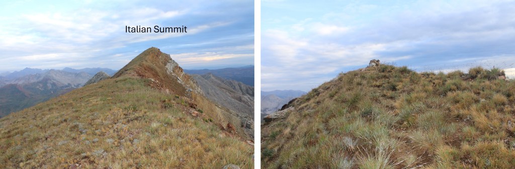At the top of the ridge I turned right and started following the ridge southeast, still on tundra. This can all be kept class 2, but there is a false summit. I followed the ridge to the false summit and saw a pair of mountain goats.