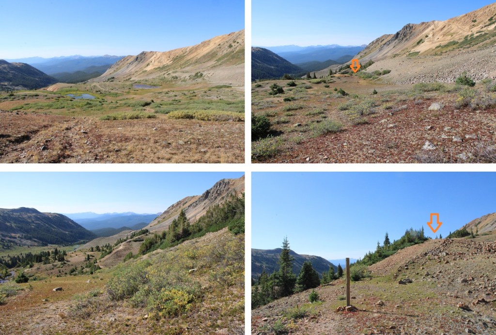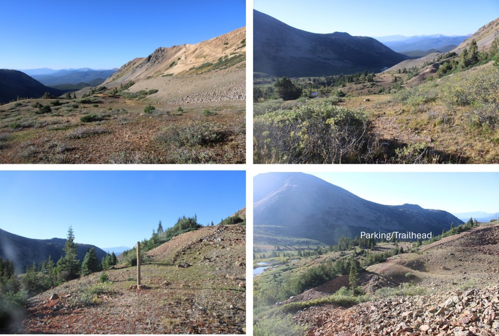 Maps call this trail 1940, but the sign at the trailhead said Fork Fryingpan Trail 1924. From Norrie Colony I took 2WD dirt road 504 for 10 miles until it ended. There is one place to turn left about halfway through the drive to stay on 504 but that was the only turn I took. The left turn is where there’s a sign saying “Hunters Beware: Moose in area, be sure of your shot”. At the trailhead there were several dispersed campsites and lots of places to park. This is a lightly trafficked and remote but easy to drive to trailhead. I didn’t see any other vehicles there. I did see several very large marmots I mistook initially for bear cubs. Be sure to marmot-proof your vehicle.