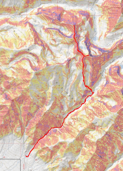 Here’s the descent route from Pigeon: First do your best to stay on the grassy areas to avoid slipping, and aim here