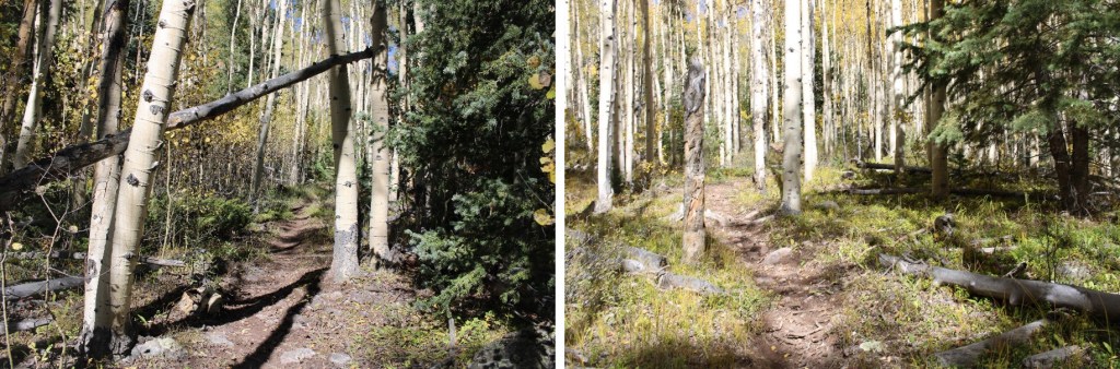 This part of the trail hugs the Animas River. Its ups and downs are barely noticeable, unless you’re paying attention to that sort of thing (which I was). I couldn’t help but think how much those elevation losses now were going to hurt on my hike back out. I could hear the rushing of the river, and looked forward to actually seeing it while hiking back out later today.