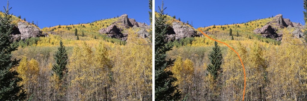 I use the term ‘trail’ loosely. I’m not sure if it’s because of underuse this year with the train being closed or if it’s just a poorly defined trail, but this is what it looks like after the lake.