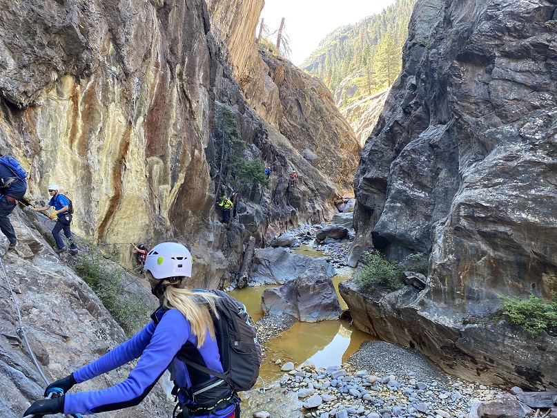 Have you ever done a Via Ferrata? If not, you totally should! This side trip worked nicely into our weekend plans, but to be honest, I was a little worn out by this point. Driving the entire weekend took longer than expected and due to some noisy dispersed campers I didn’t get a lot of sleep the night before. We met the team at the Box Canyon Trailhead at 9am and hiked up to the staging area.