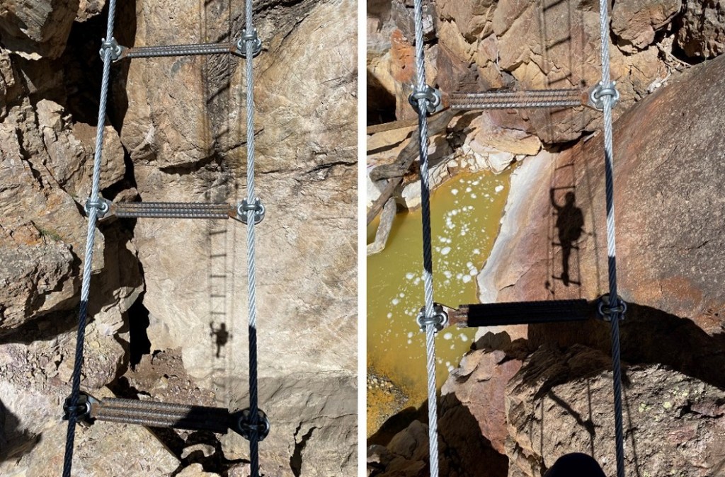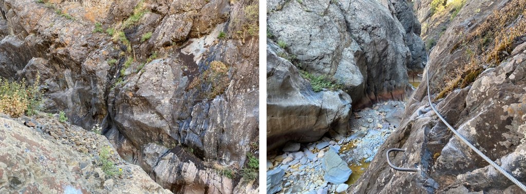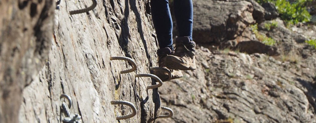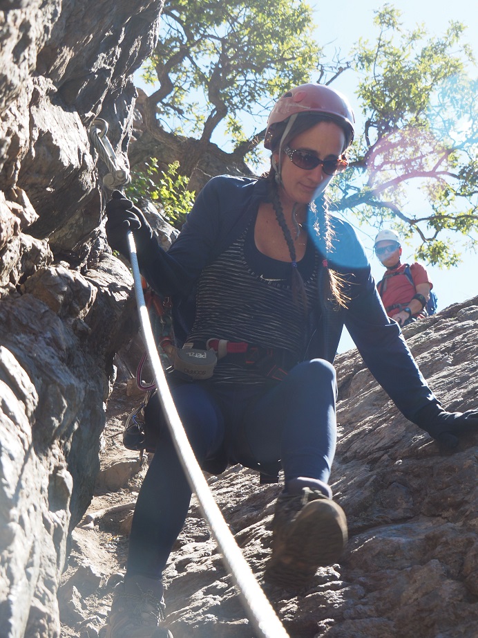 This was an unguided climb, but there was still someone at the entrance to make sure we had all the proper gear (closed toed shoes and helmet… looking at you Eric). We’d stopped and rented lanyards but had our own harnesses and helmets. Important signage: