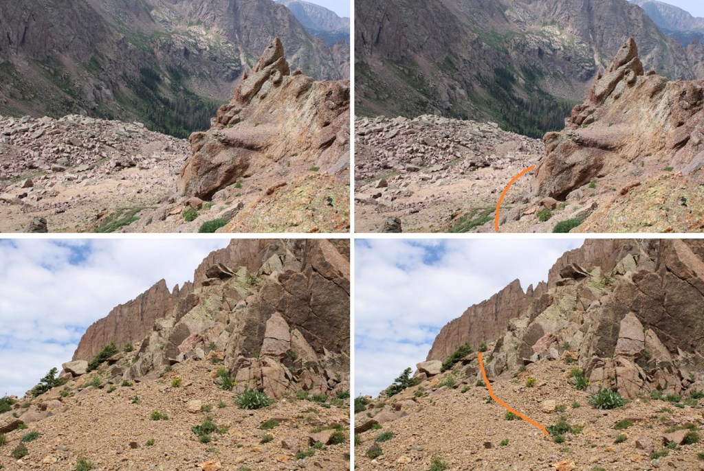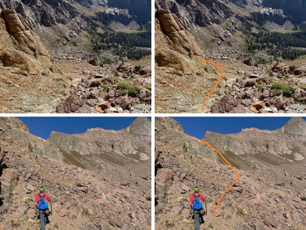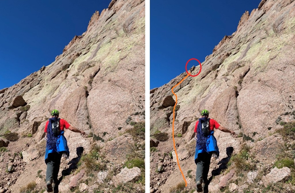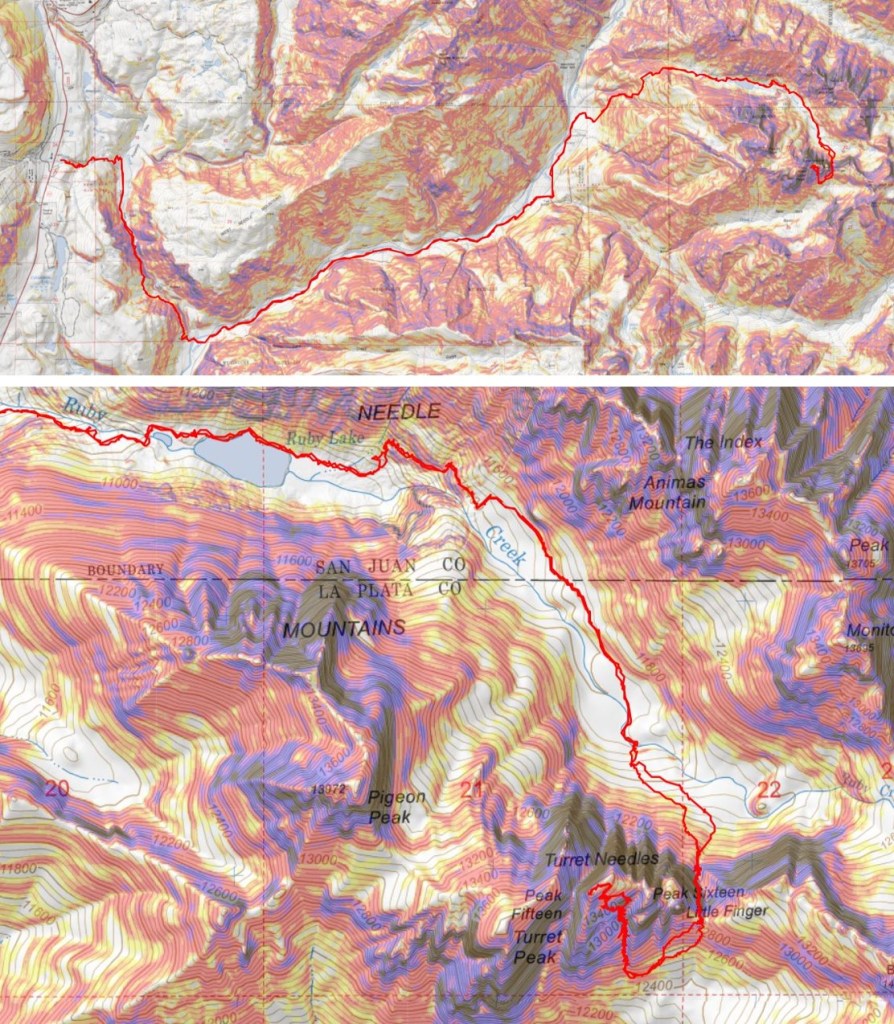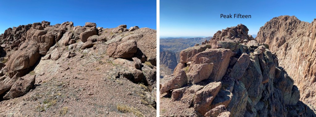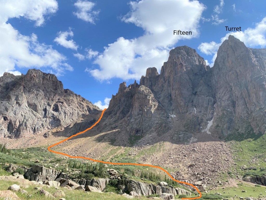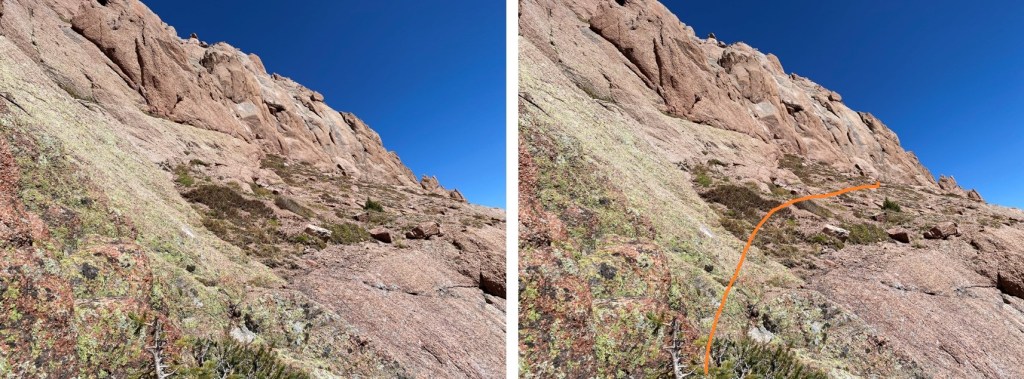 3: Summit 13577 and take the ridge to 13656 (I’m glad I didn’t end up needing to do this, as the ridge looked rotten).
