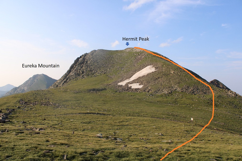 And now, on to Eureka. I first crossed over to the east side of Hermit Peak (which also had a cairn)