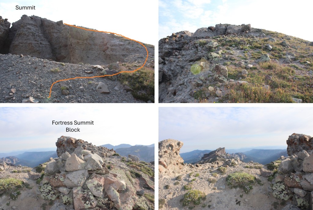 I summited Fortress Peak at 8:15am. There was a summit register in one of those pipe tubes, but the paper inside was so wet I didn’t want to disturb it, so I left it alone.