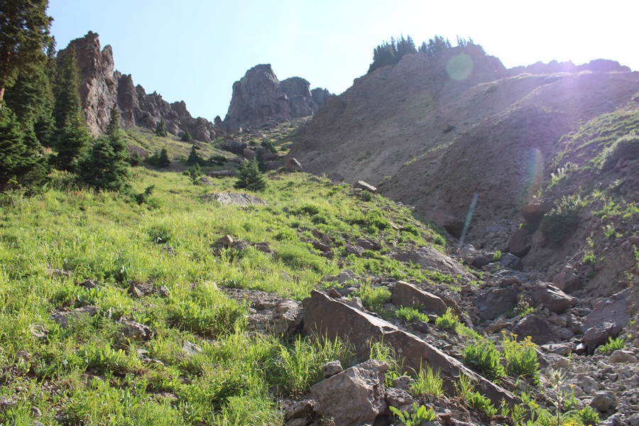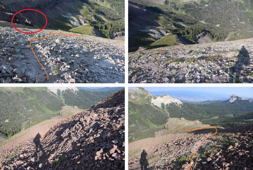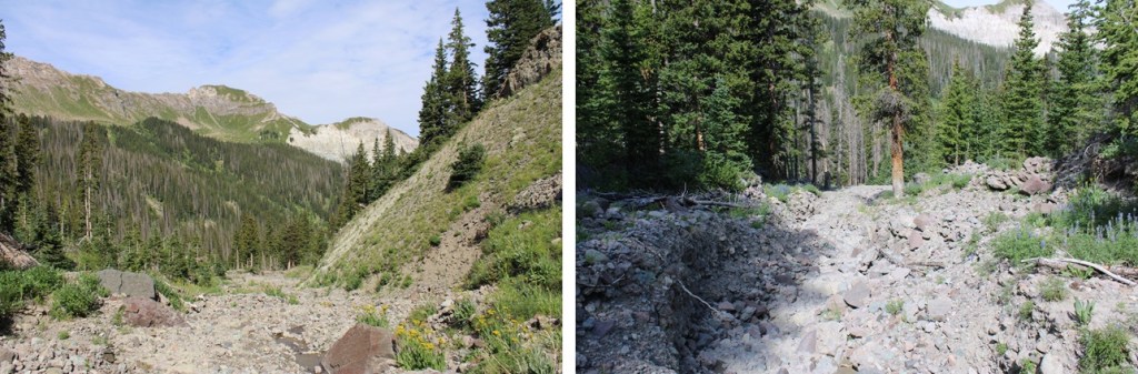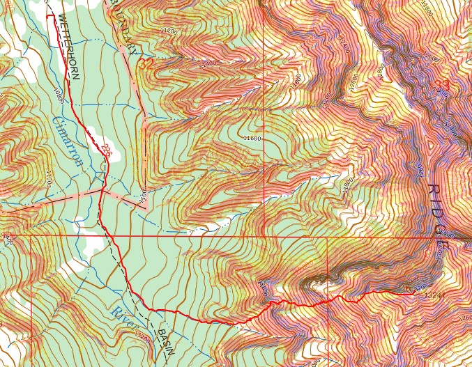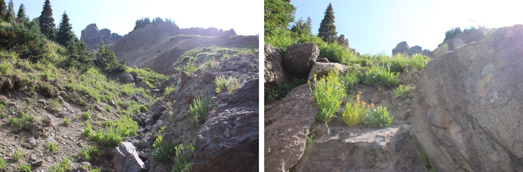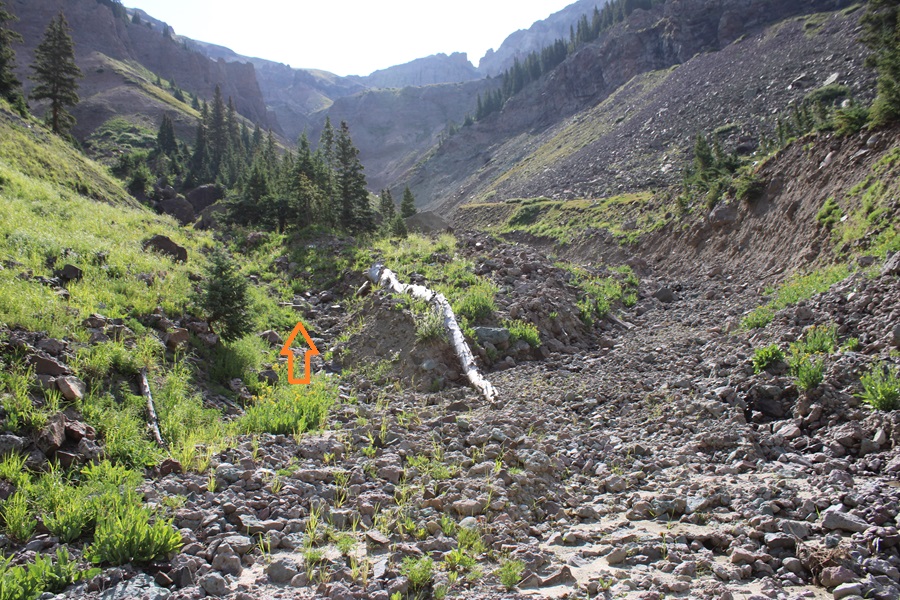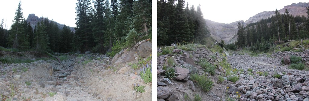And now to follow the drainage back to Wetterhorn Basin Trail No 226