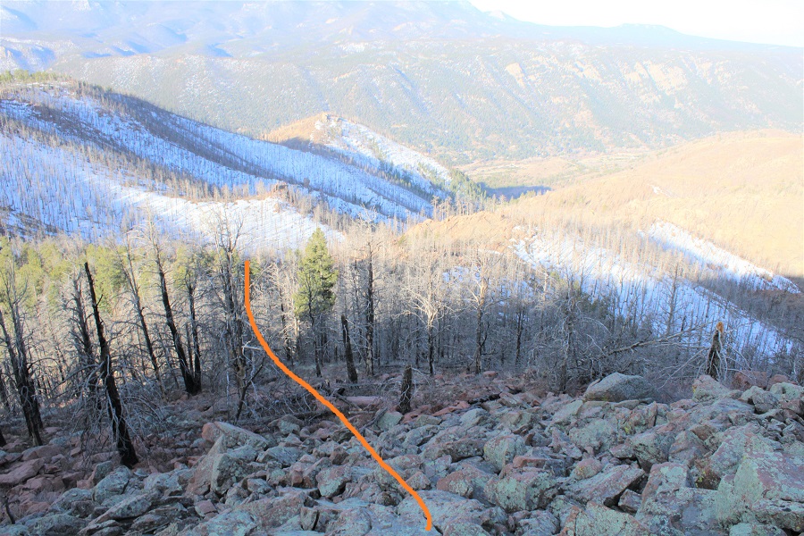 Once at the saddle I did my best to follow my tracks back down