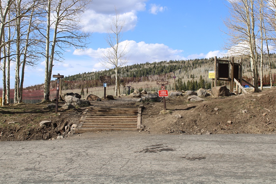 Then I drove to the Snow Bowl, where the trailhead is for Humphrey’s Peak. There were a lot of skiers driving down the mountain, but I was the only one going up. On the drive in I saw a sign that said “Skiing Open 10am-4pm, TH-SU”.