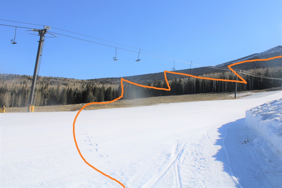 I lost the trail several times, but was able to follow snowshoe tracks down. If you’re blazing your own trail, you can stay in the trees and parallel the ski area by heading west, which will lead you to the parking area.