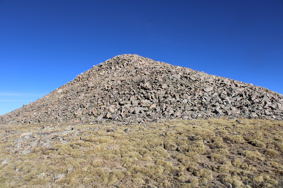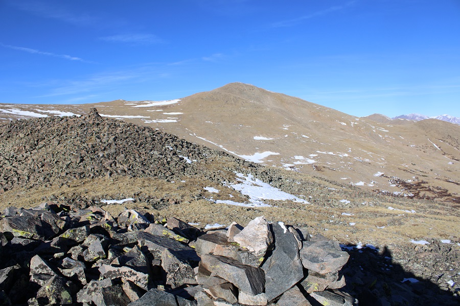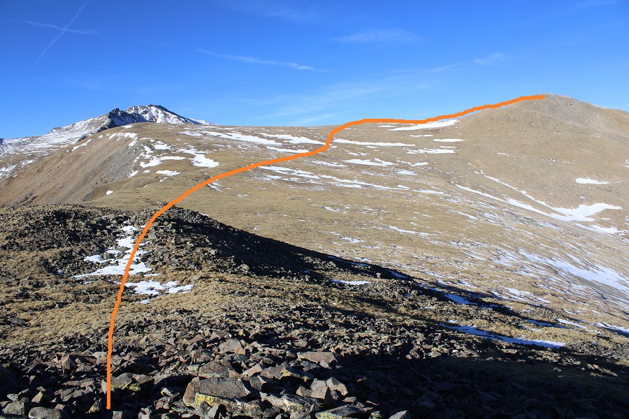 I crossed the rocky area, and followed the tundra to PT 13374, easily avoiding the snow
