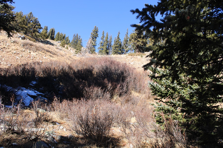 I bushwhacked to treeline. This was easy as far as bushwhacking goes, as there weren’t too many downed trees and the trees weren’t jumbled close together.