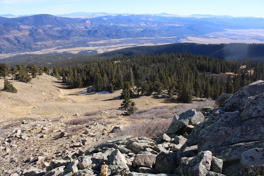 I’ve spent the past week in Florida for work, so I was a little worried about breathing above treeline today. I made it to the Harvard Lakes trailhead easily, as there wasn’t any snow on the ground (and it’s December!). I parked and was on the trail at 5am. I was following the Colorado Trail north.