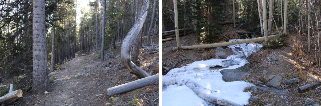 The first 7 miles of this trail follows the Colorado Trail. The Colorado Trail is an easy to follow, class 1 trail. It started with a few switchbacks, and then followed the curve of the mountainside north.