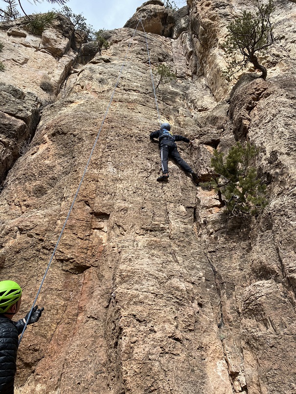 Our intention was to get some photos of me climbing. My main intention was to learn. I want to solo a few Centennials this summer that include rock climbing, and while I’ve climbed for years in a gym and many times with groups, I’ve never been solo, or even in charge of setting up my own equipment. That means I have no true idea what I’m doing, and that needs to change.