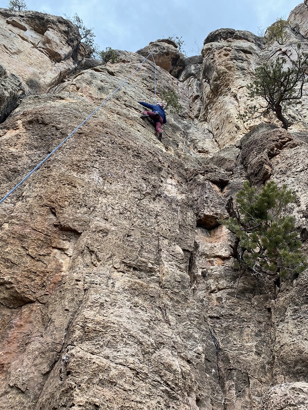I was given a quick briefing about how to secure ropes that astonished me in its reliance on trusting the strength of rocks I’ve been taught not to trust, and then started climbing. I’ve never been climbing without shoes before, and it was trickier than I’d imagined. I’ve also never self belayed, and I was clumsy to say the least. The rope kept getting longer than I wanted it to, but I wasn’t sure how to quickly shorten it.