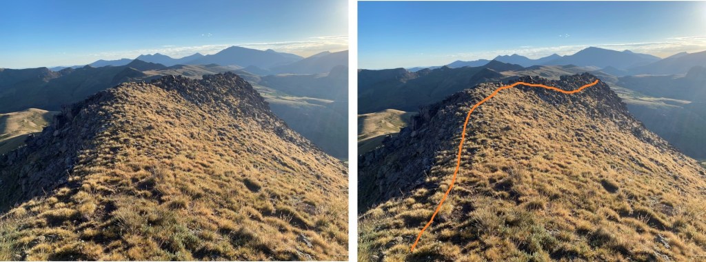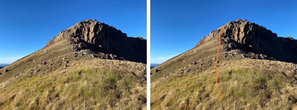 And here’s the class 2+ option, heading southwest, and then gaining the ridge
