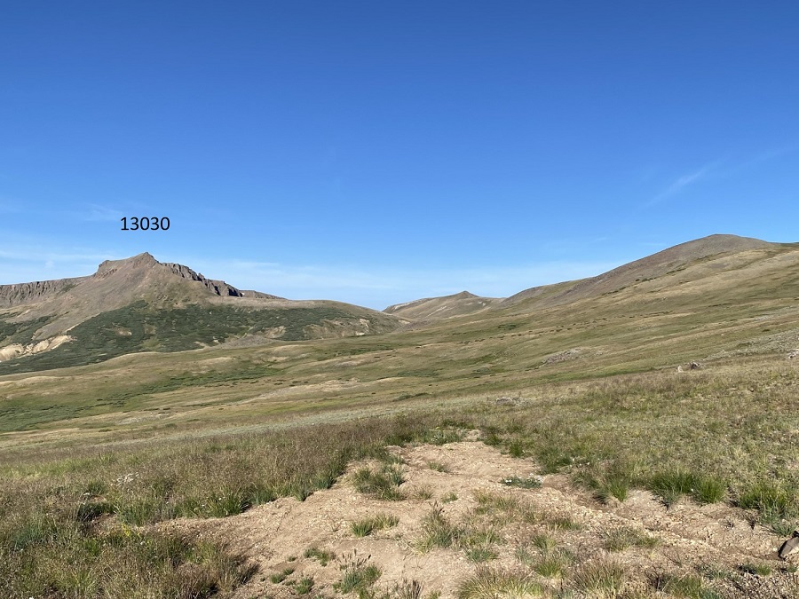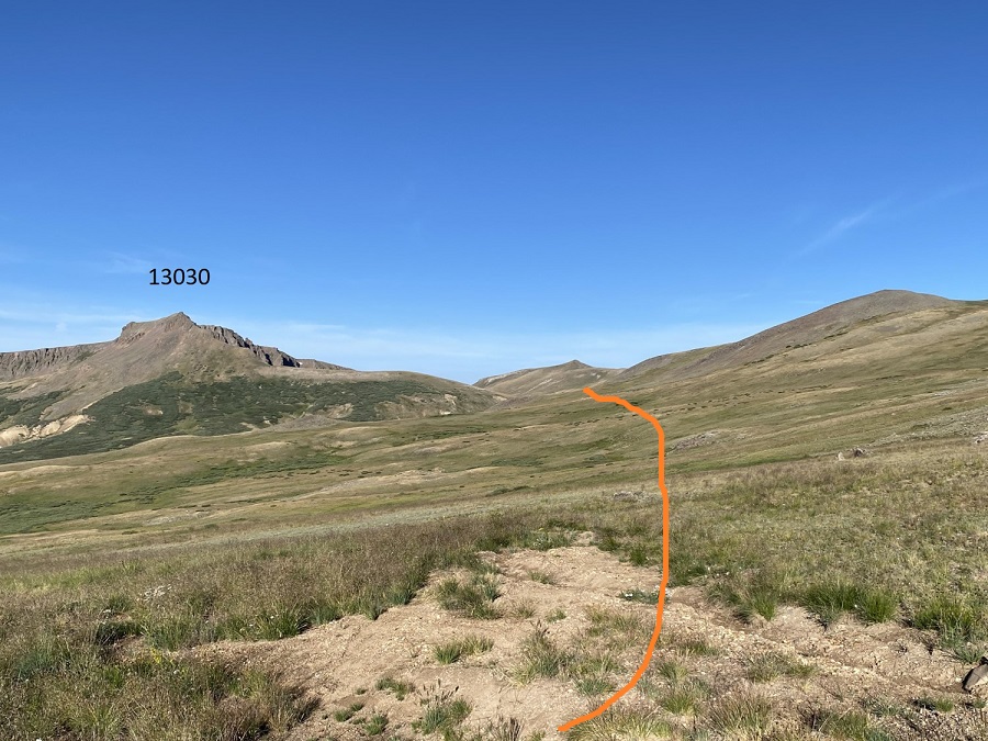 At the top f the pass I could see PT 13030.  At about 12500’ I left the road and headed for the ridge, staying at about 12,500’ of elevation.