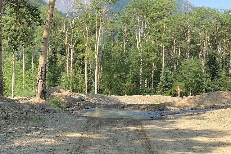 With that in mind I decided to spread some seeds near the aspen grove at Barr Camp where there was already a bench for weary hikers to sit and enjoy the view of the peak. These wildflowers will probably grow here.  I hope they do, but because I wasn’t 100% certain they’d take I only planted a few tablespoons and saved the rest for another area.   I also re-tied my shoe.  While I was doing so I noticed someone sleeping in a sleeping bag about 40 feet from the trail.  Stay warm my friend!