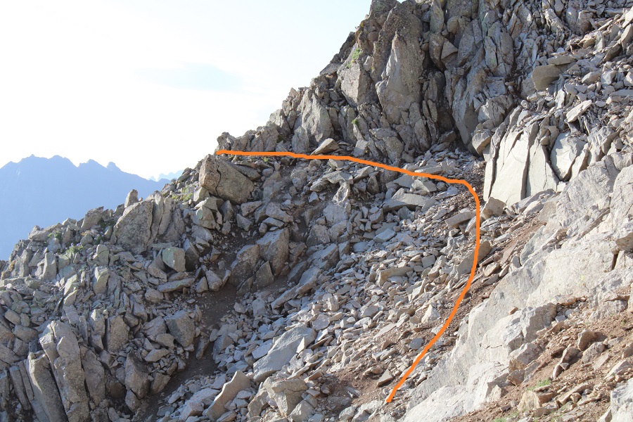 Just before making it to the saddle I turned left, and scree-surfed north, back to the rocky ledges I’d ascended that morning