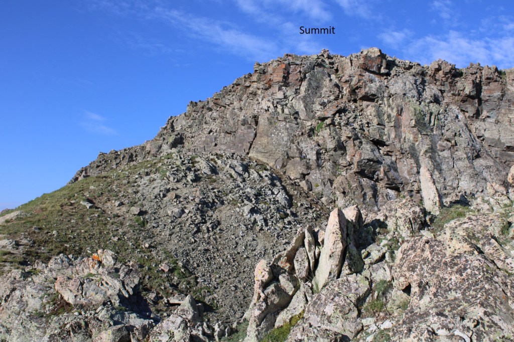 Eventually the ridge became filled with scree, but the angle wasn’t difficult, and it all remained class 2