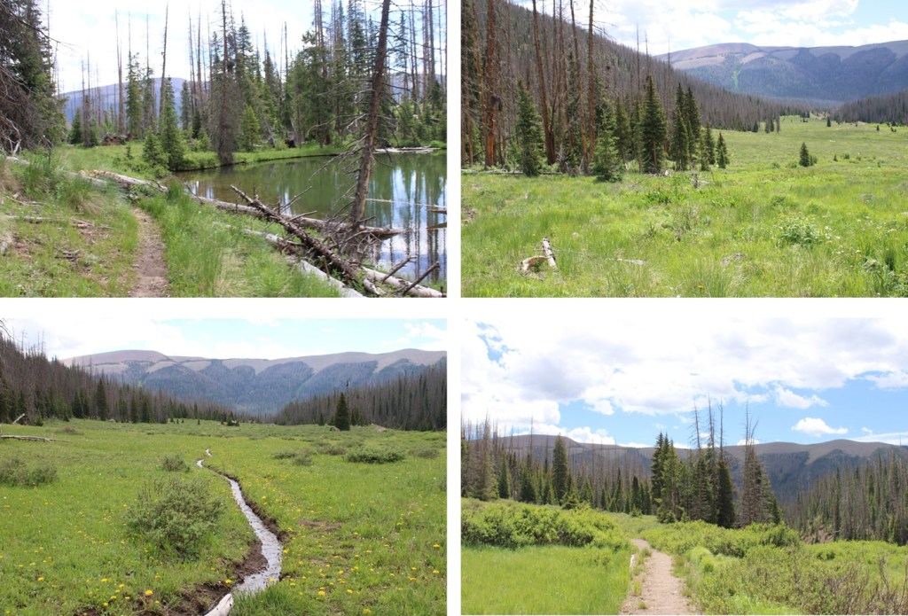 Now to head back to my campsite. This was actually fairly easy. There was a solid trail that descended from The Window, which eventually went away. I followed the trail as far as I could, then just aimed east for the Continental Divide Trail, which I could see located by the pond in the distance.